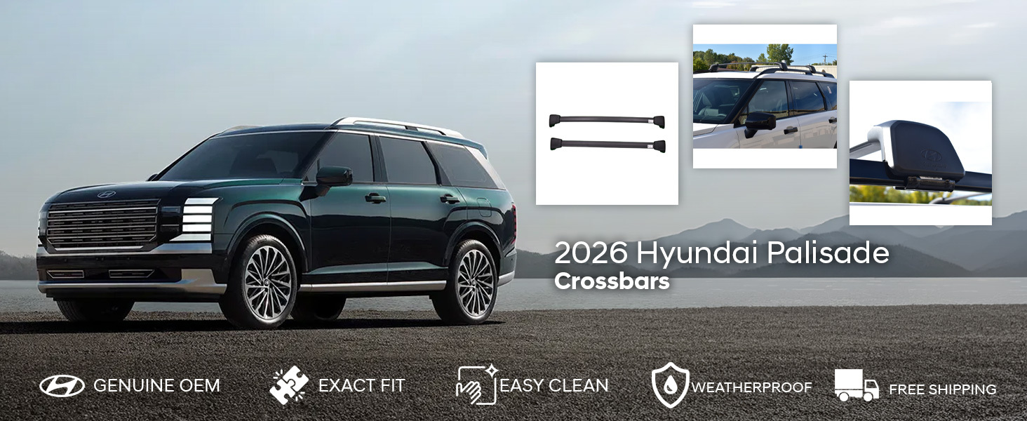 Upgrade your Palisade's versatility with the genuine OEM 2026 Hyundai Palisade Crossbars, designed to perfectly integrate with your vehicle’s factory side rails. These crossbars provide a secure foundation for carrying bikes, kayaks, skis, cargo boxes, and more. Their aerodynamic design helps reduce wind noise and drag, ensuring a quiet and efficient ride even when loaded. Easy to install and remove, these crossbars maintain the sleek look of your Palisade while offering the strength and reliability you expect from Hyundai. Ideal for family trips, outdoor adventures, or everyday use, they make transporting gear simple and worry-free. Order your set here today at Hyundai Shop!